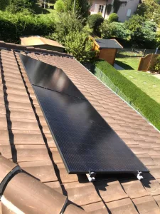 Installation de 30 panneaux photovoltaïque sur 3 pans EST SUD et OUEST, qui permettra une belle production électrique du matin jusqu’au soir.