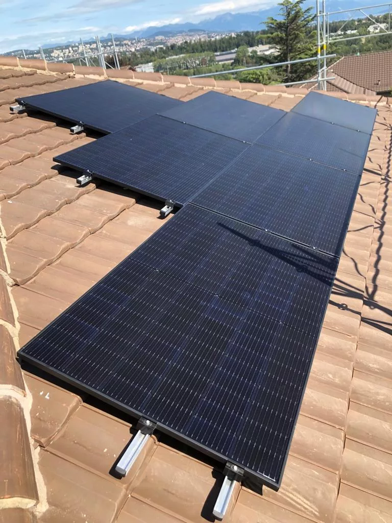 Installation de 30 panneaux photovoltaïque sur 3 pans EST SUD et OUEST, qui permettra une belle production électrique du matin jusqu’au soir.